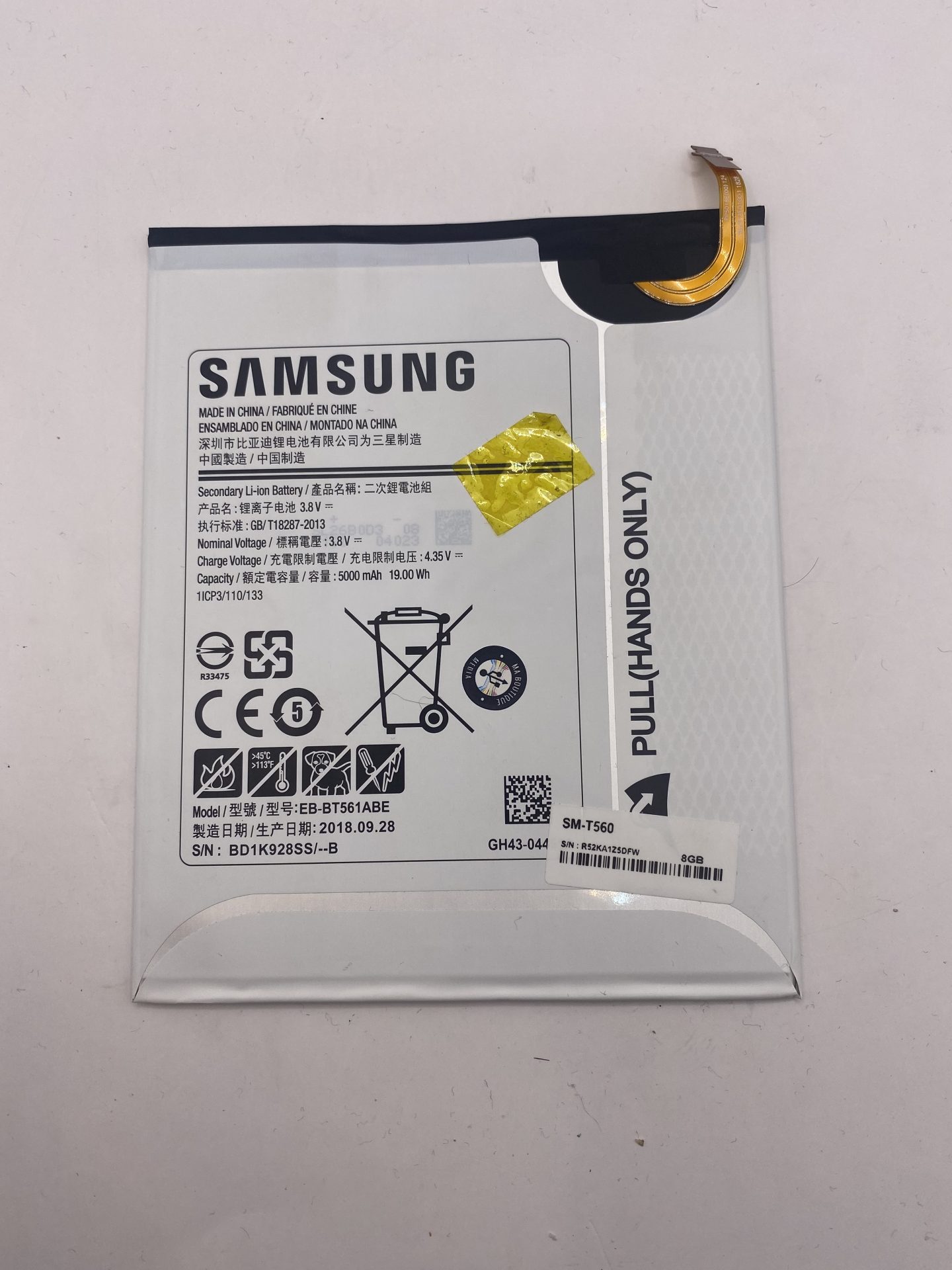 batterie 5000mAh 3.8v samsung galaxy tab sm-t560 EB-BT561ABE